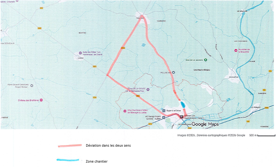 Les déviations mises en place dans le cadre des travaux d’aménagement du centre-bourg de Champigné ont pour objectif d’éviter un afflux trop important de circulation dans les rues communales de Champigné inadaptées à un fort trafic de véhicules notamment de poids-lourds. Cela pour réduire les risques d’accident, de dégradations des équipements ou de dégrader la qualité de vie des riverains.
