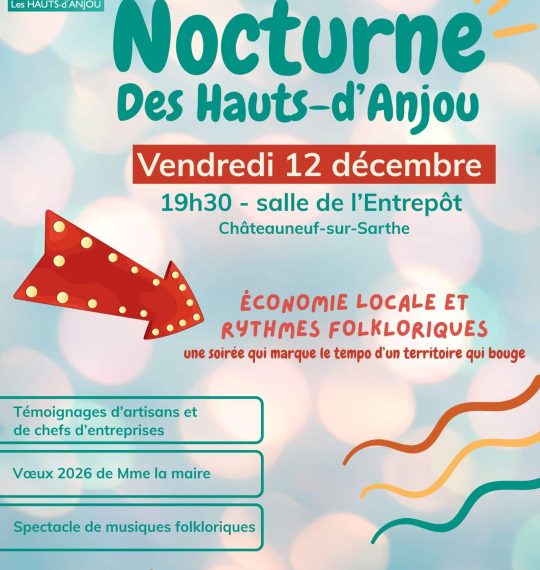 Pour cette 5e édition, la vie économique locale sera à l’honneur. Nous vous donnons rendez-vous le vendredi 12 décembre à 19h30 dans la salle de l’Entrepôt à Châteauneuf-sur-Sarthe.