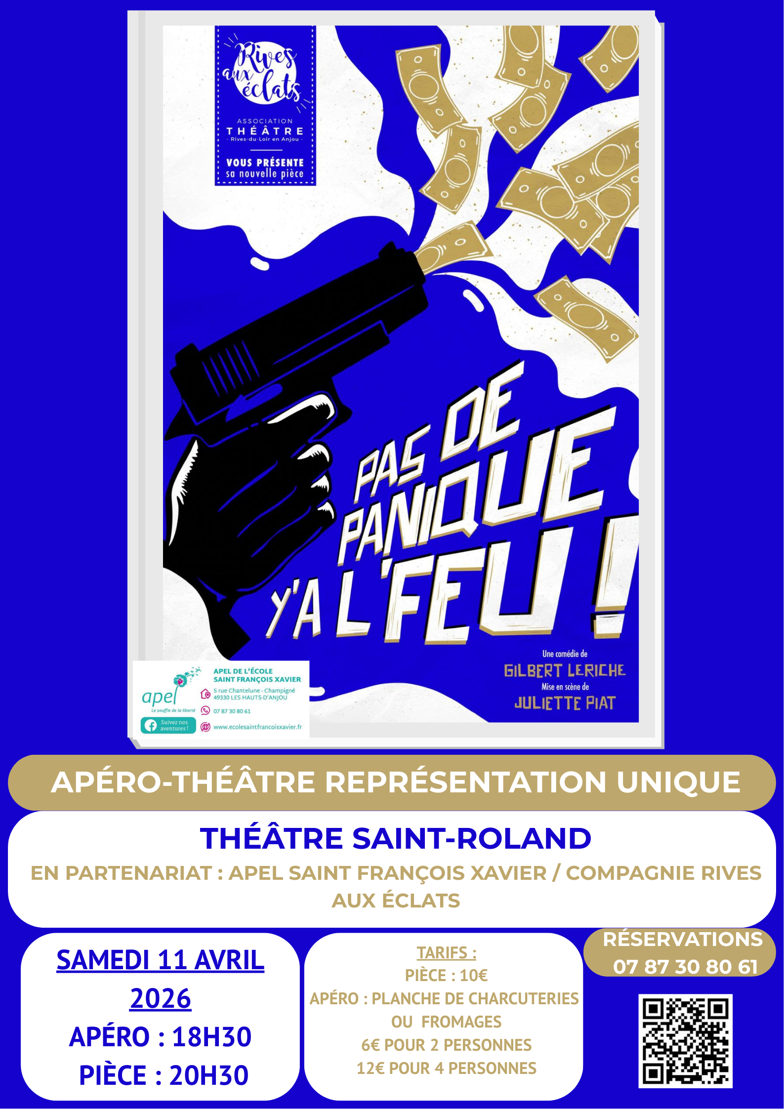 Cette année encore, la compagnie Rives aux éclats revient au Théâtre de Saint Roland, avec sa pièce « pas de panique, y’a le feu », de Gilbert Leriche, mis en scène par Juliette Piat.