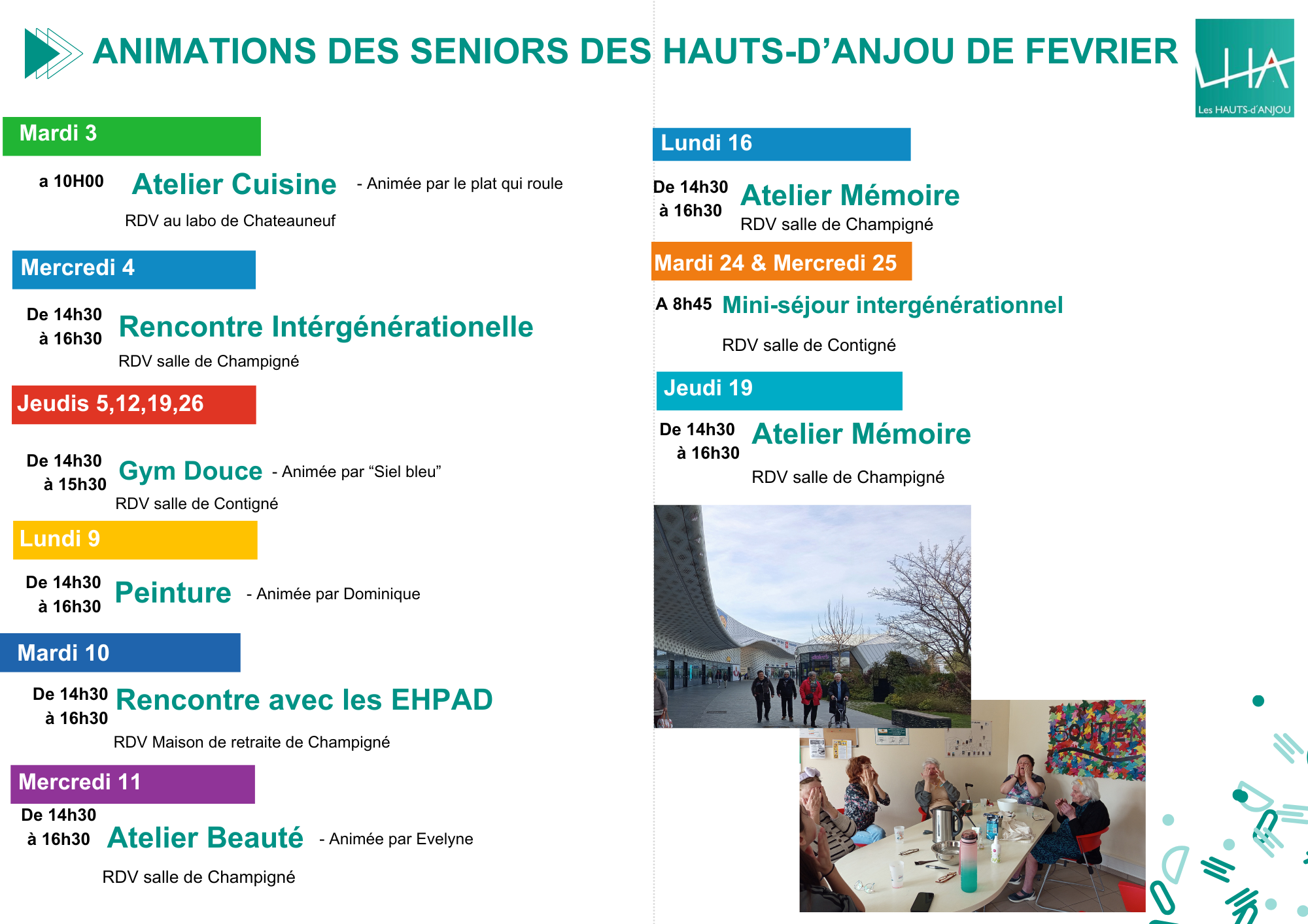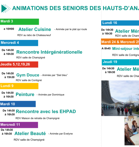 Charline GROSBOIS, animatrice seniors des Hauts-d’Anjou, vous propose de nombreuses animations, sorties et ateliers pour cette fin d’année.