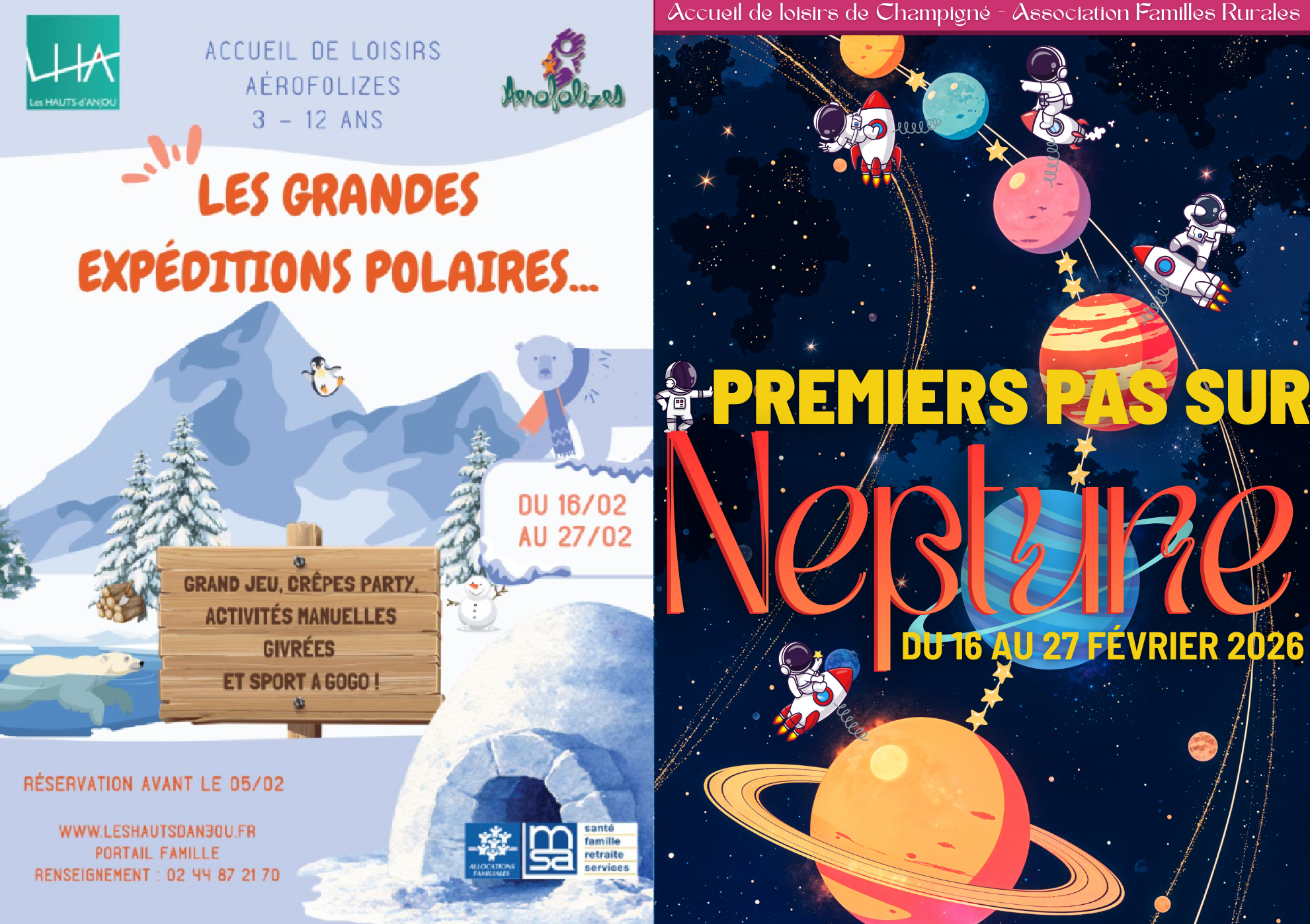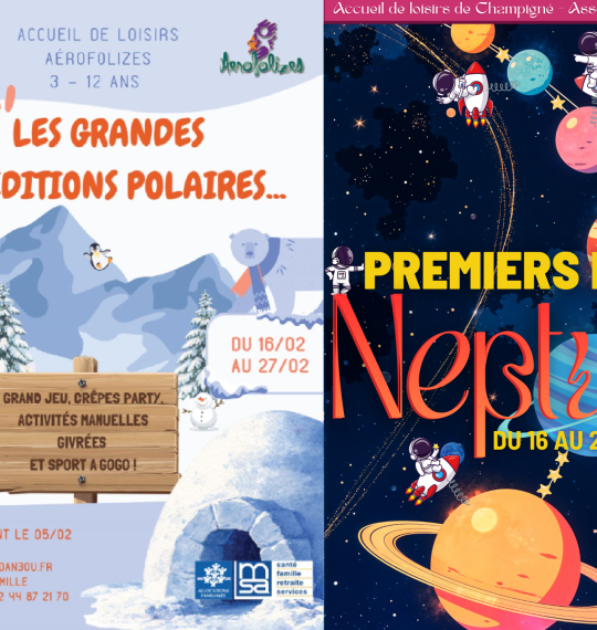 Les inscriptions aux centres de loisirs pour les vacances de février sont ouvertes. Inscrivez vos enfants dès aujourd’hui aux activités proposées par Aérofolizes à Châteauneuf-sur-Sarthe et par Ani’mômes à Champigné.